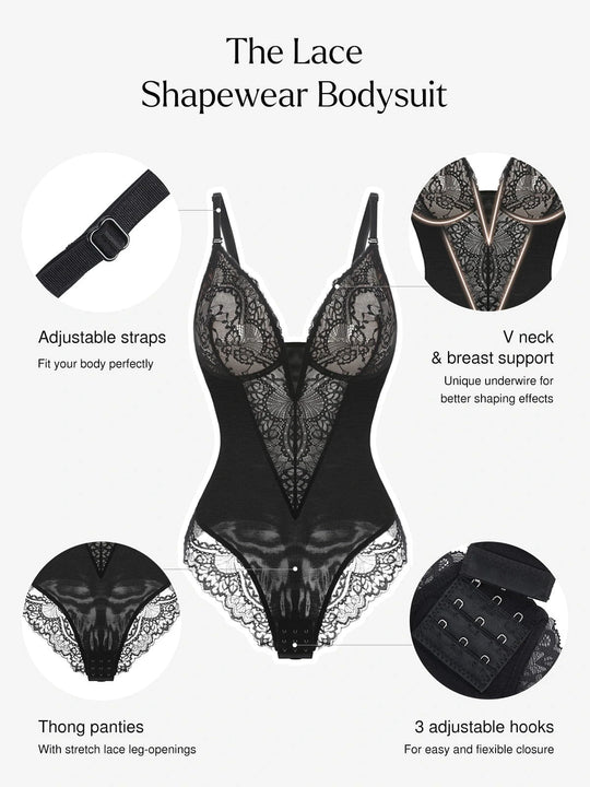 Shapewear Lace Deep V-Neck Sculpting Thong Bodysuit