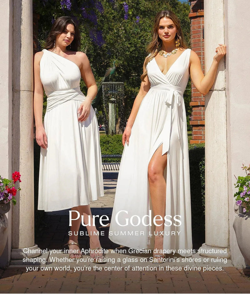 Channel your inner Aphrodite when Grecian drapery meets structured shaping. Whether you’re raising a glass on Santorini’s shores or ruling your own world, you’re the center of attention in these divine pieces.