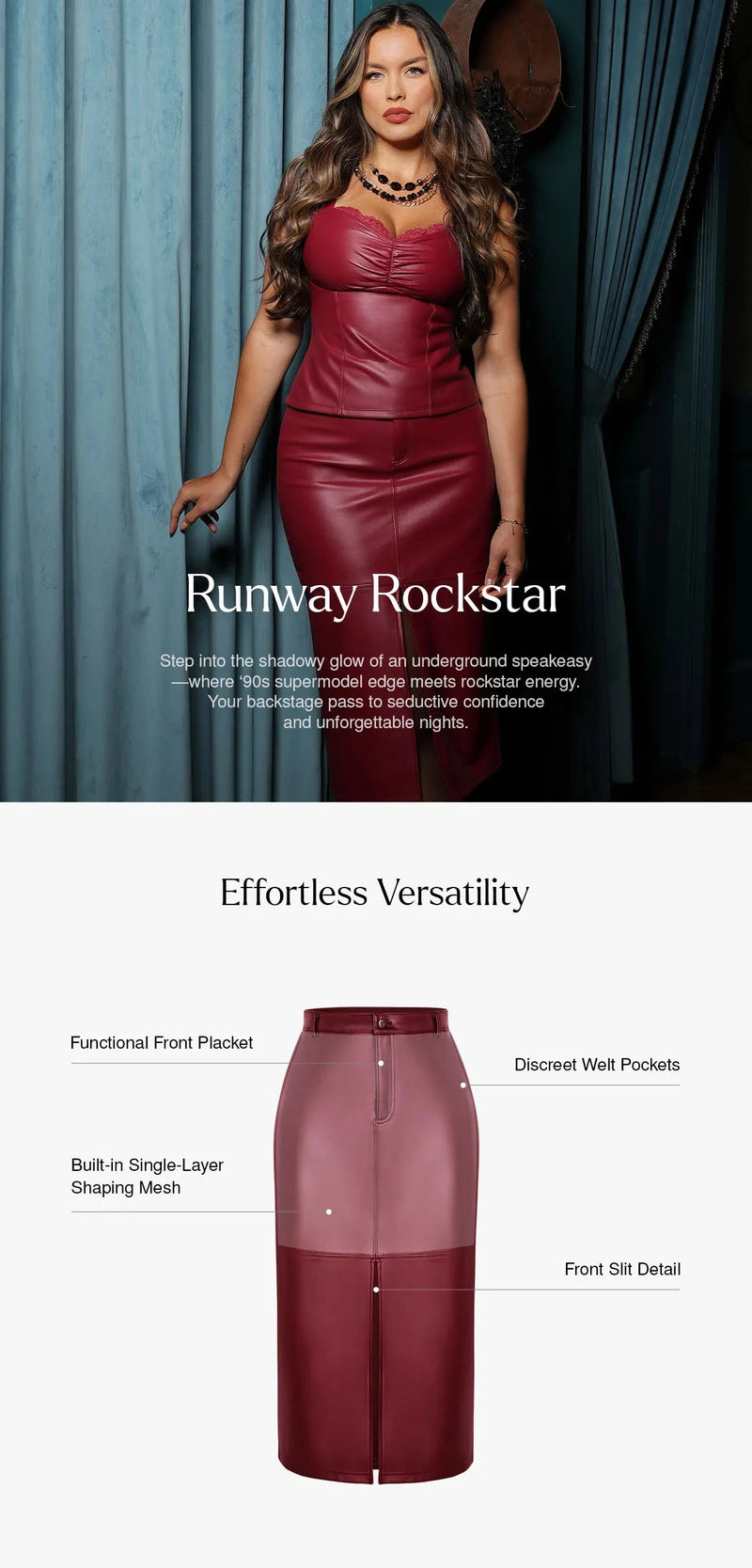 Popilush® Sculpted Faux Leather Contour Skirt