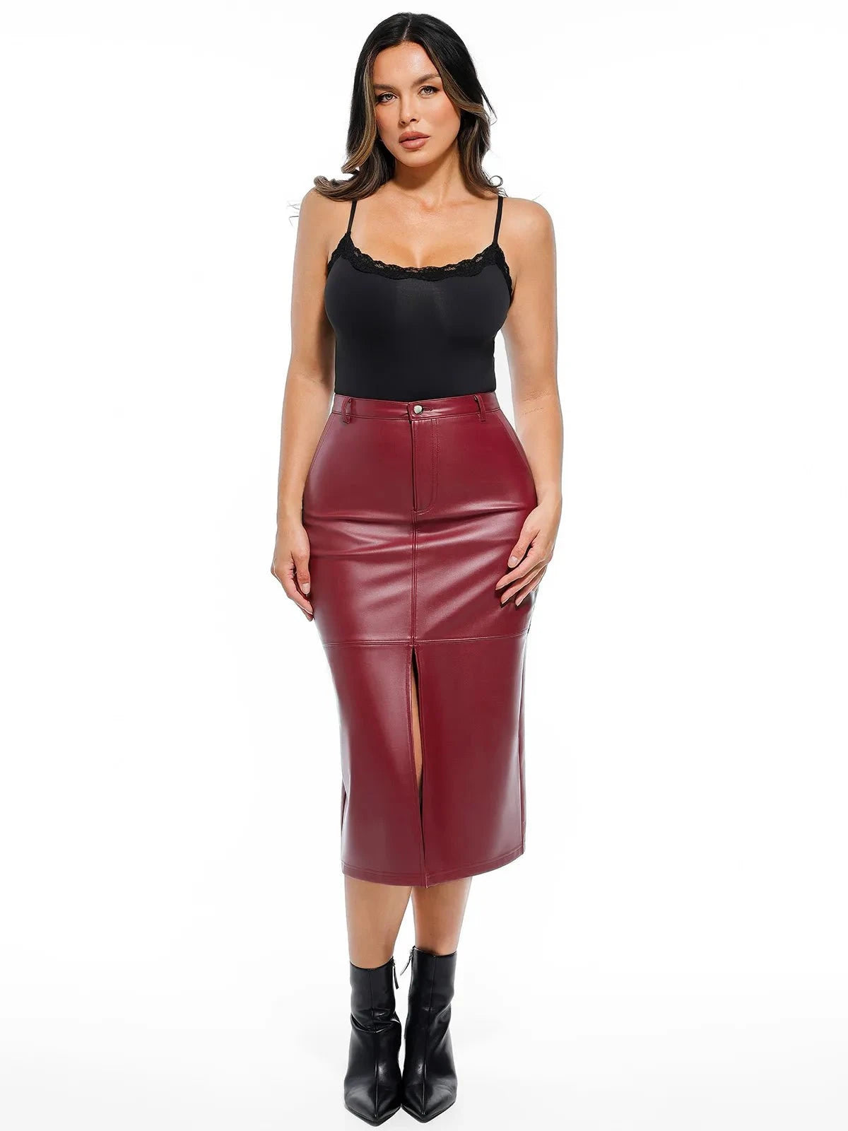 Popilush® Red / XS Sculpted Faux Leather Contour Skirt