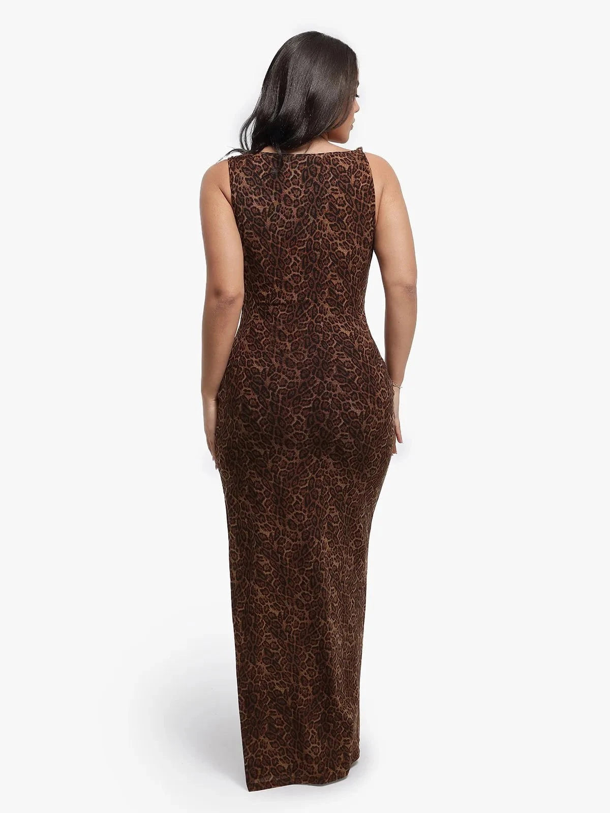 Shapewear Leopard Cowl Neck Ruched Sculpting Maxi Dress