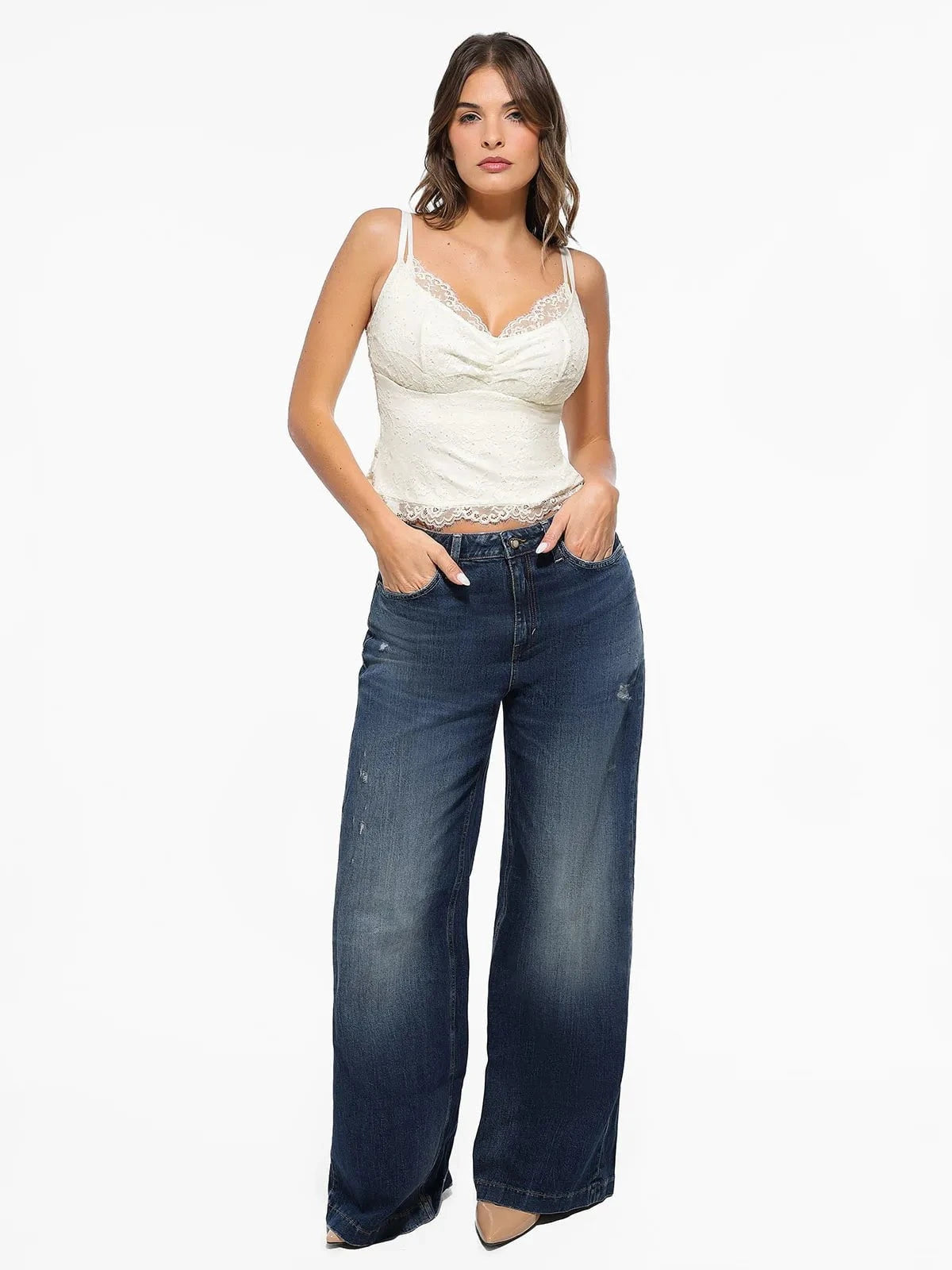 This is that-I woke up like -this chic. The princess seam makes it look tailored,while the lace keeps it flirty. I've worn it with mom jeans and a moto jacket for effortless cool.