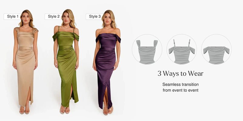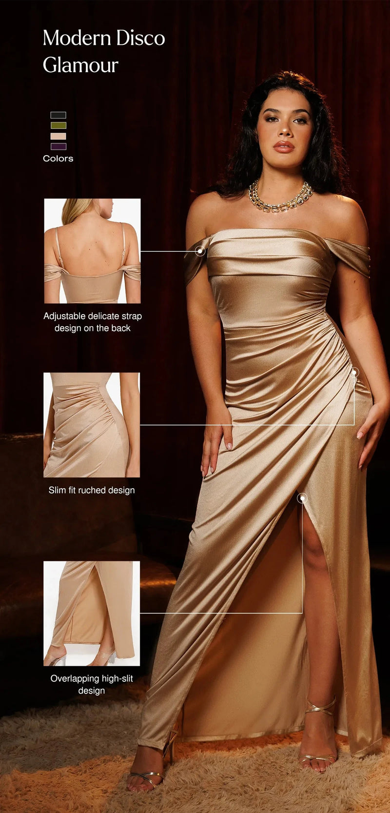 Popilush® Bodycon Party Cocktail Evening Gown Shapewear Off Shoulder Shine Ruched Sculpting Maxi Dress