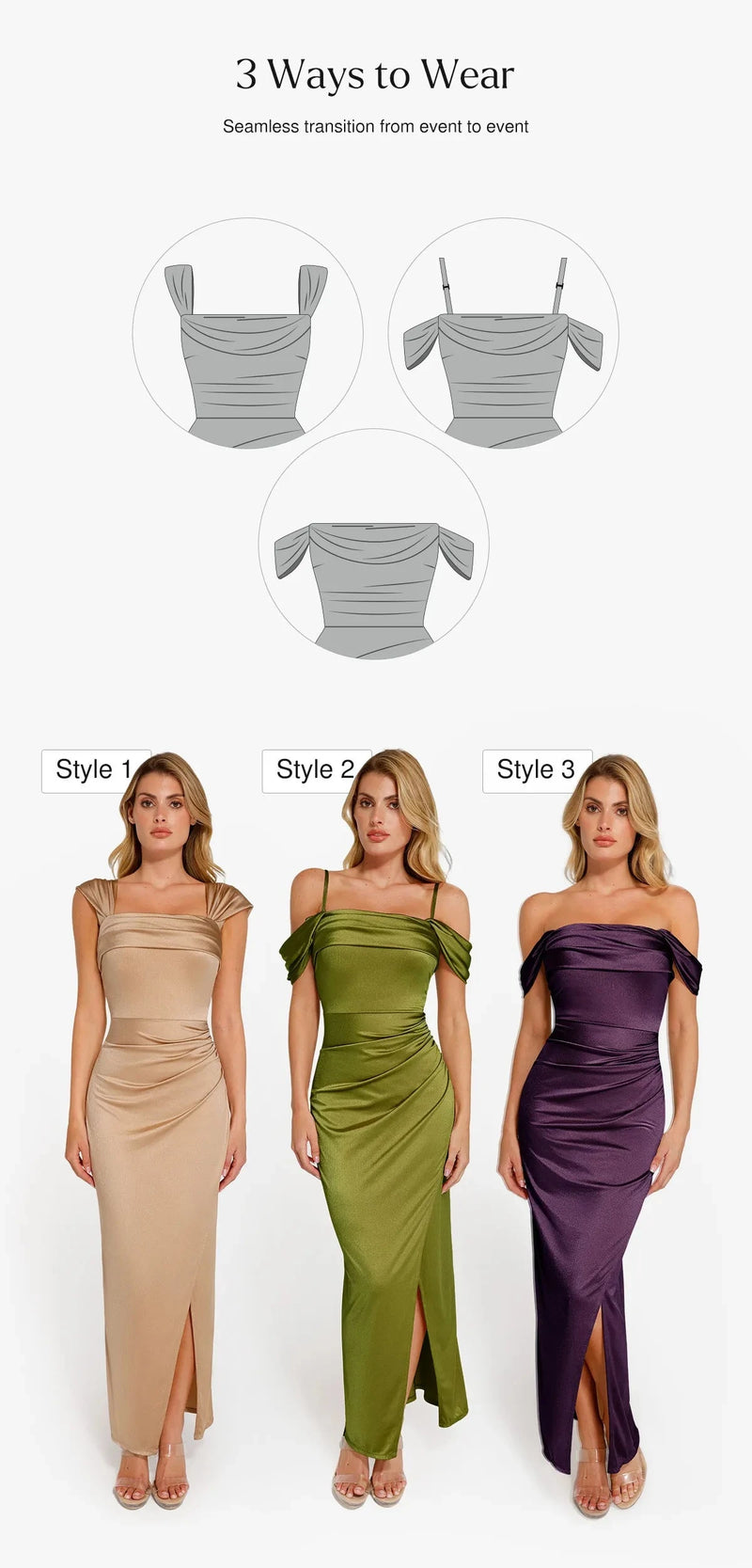 New arrivals Shapewear Off Shoulder Shine Ruched Sculpting Maxi Dress
