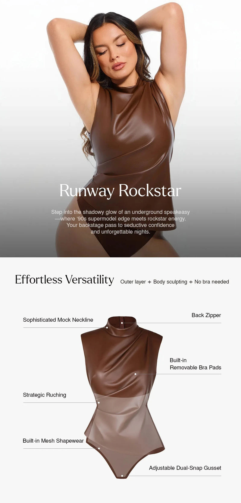 Popilush® Sculpting 3-in-1 Faux Leather Bodysuit