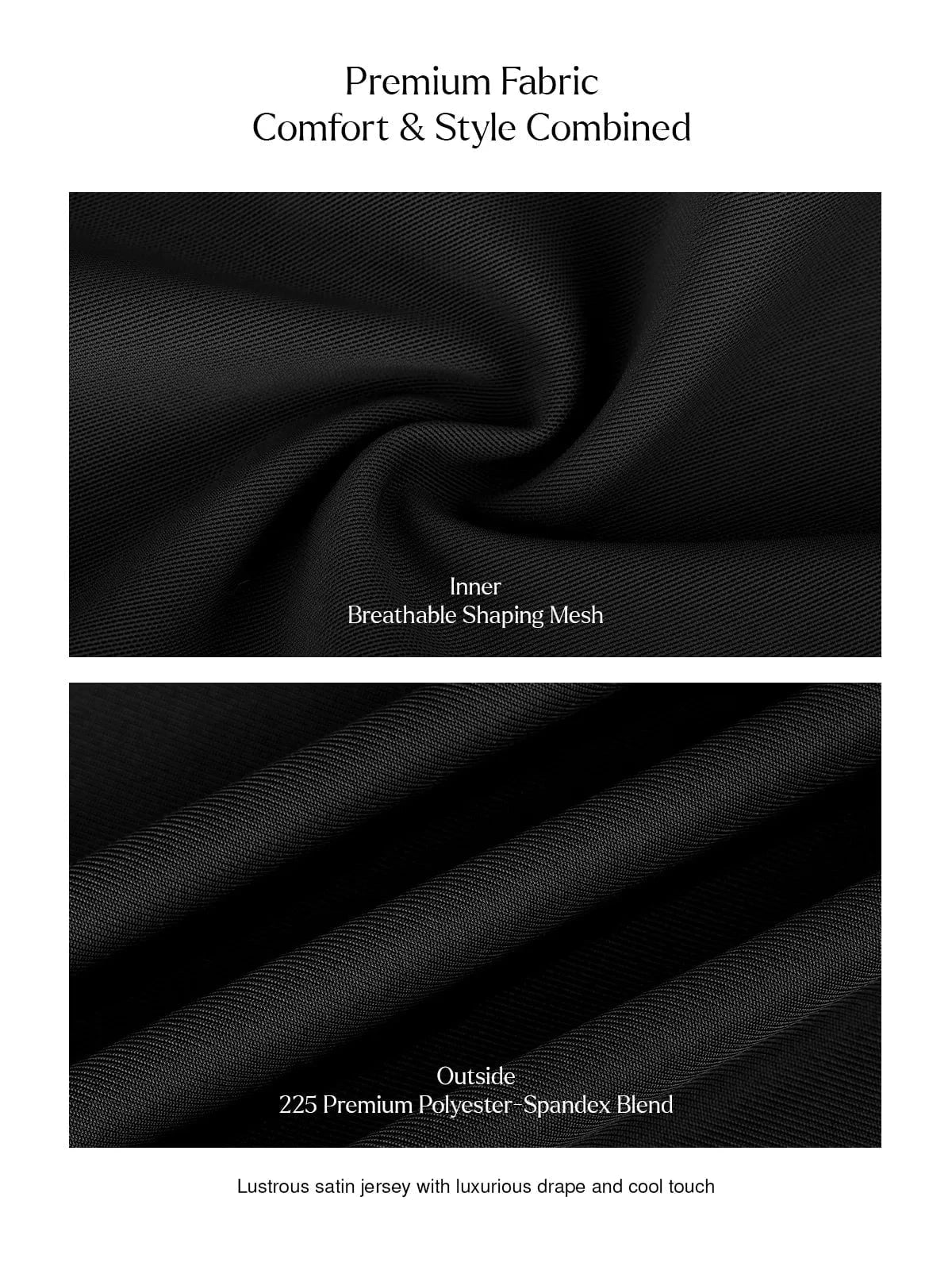 Innovative built-in shapewear with moderate compression sculpts your figure, enhancing your natural curves for a sleek, smooth look.
