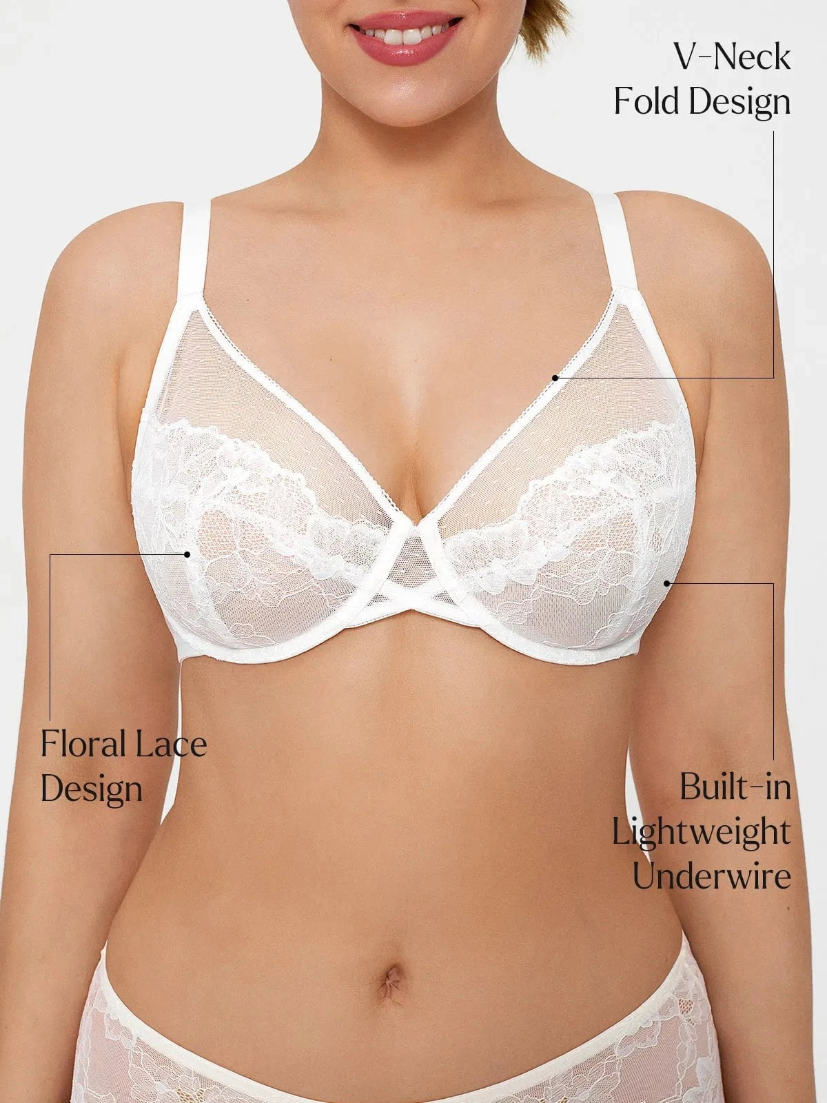 Popilush® White / 34C Lightweight Underwire Minimizer Lace Mesh Bra