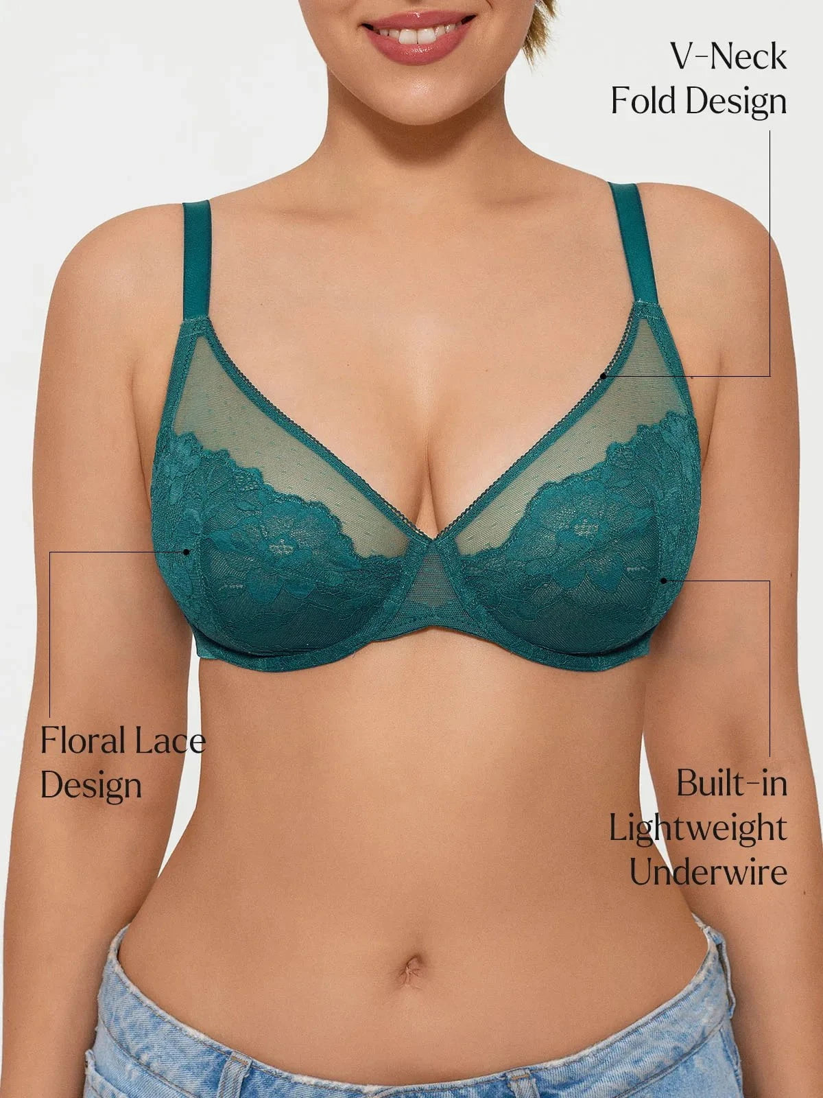 Popilush® Green / 34C Lightweight Underwire Minimizer Lace Mesh Bra