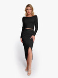 Shapewear Rib Modal Built In Sculpting Midi Wrap Skirt