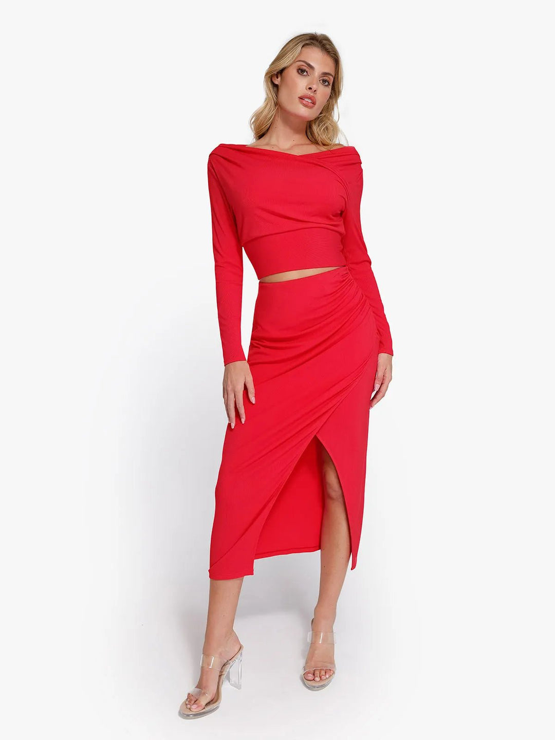 Elevate your wardrobe with the Shapewear Rib Modal Built In Sculpting Midi Wrap Skirt. The high-waisted fit and elegant slit create a striking silhouette, while the soft, stretchy modal fabric offers unmatched comfort. Perfect for any occasion, this versatile skirt blends style and support effortlessly.