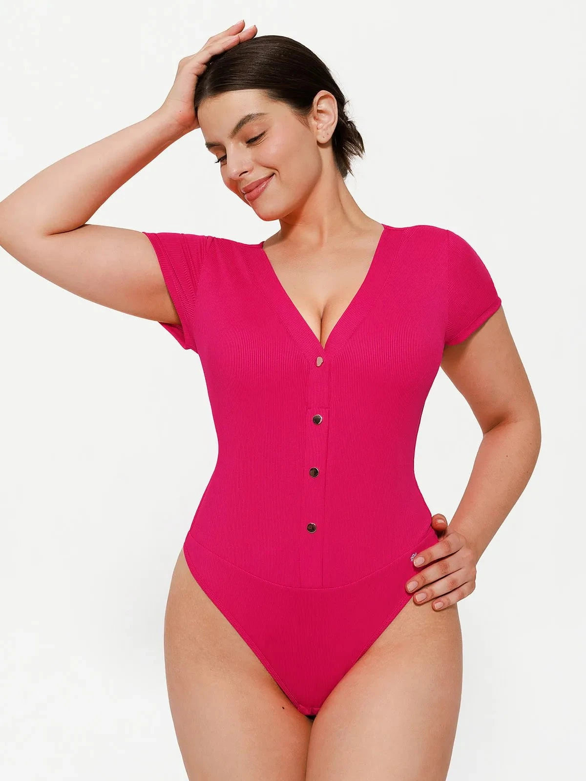 Shapewear Deep V-Neck Button Front Sculpting Bodysuit