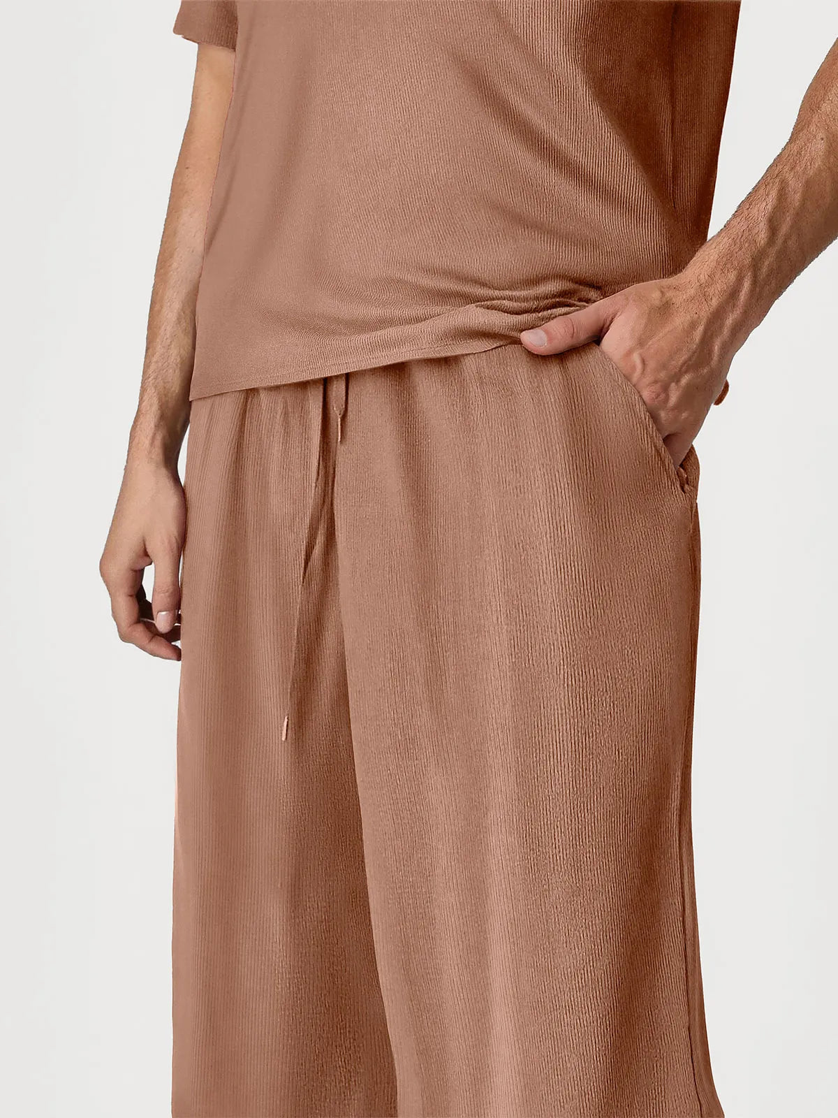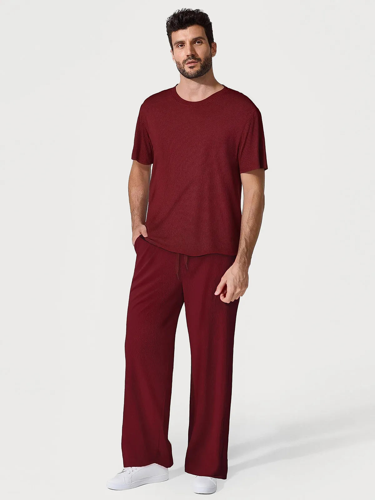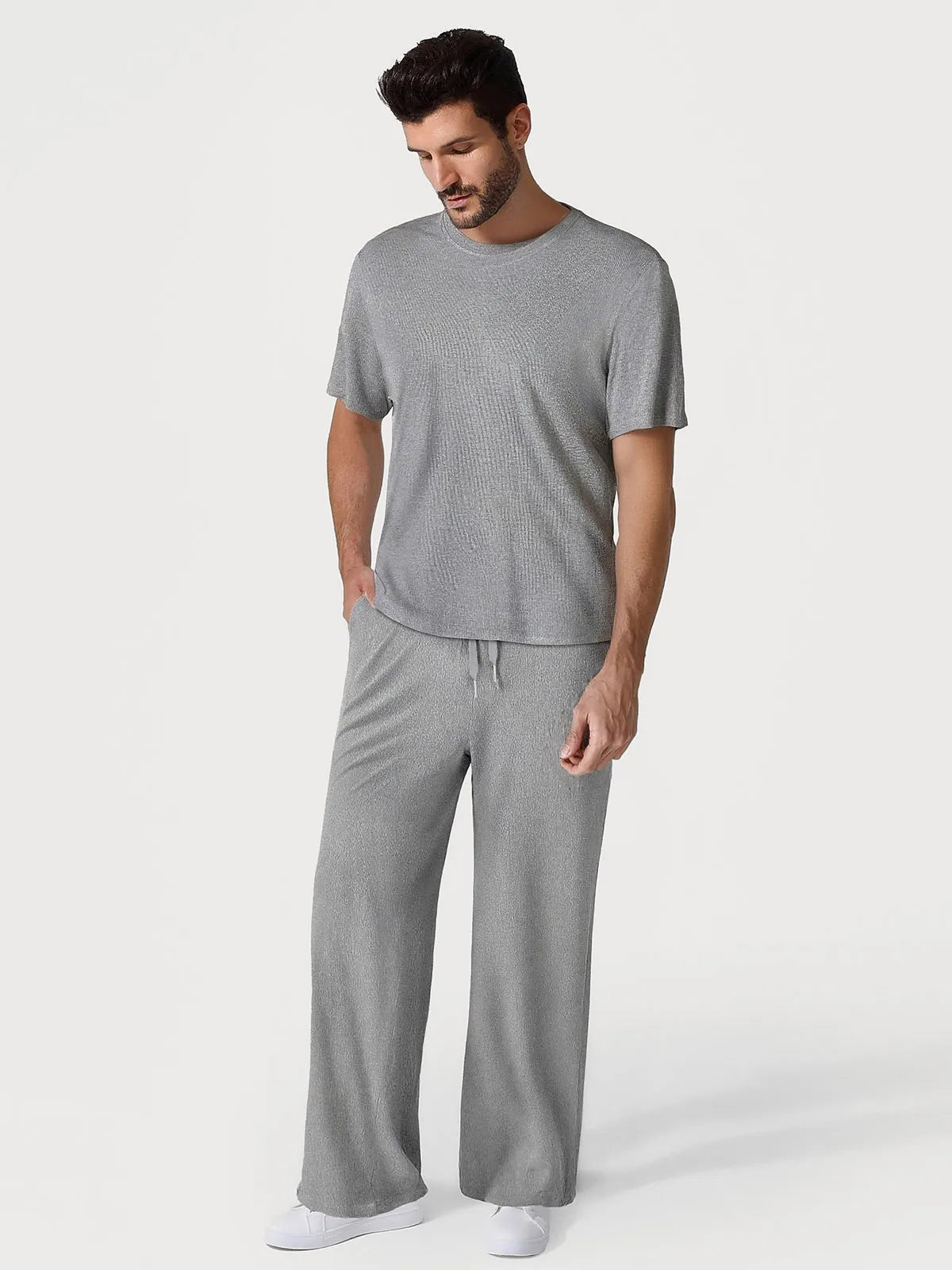 A classic crewneck combines timelessness and breathability. The relaxed straight-leg cut provides unrestricted ease, perfect for lounging at home. The elastic waistband ensures simple wear and offers a secure, comfortable fit that stays in place.