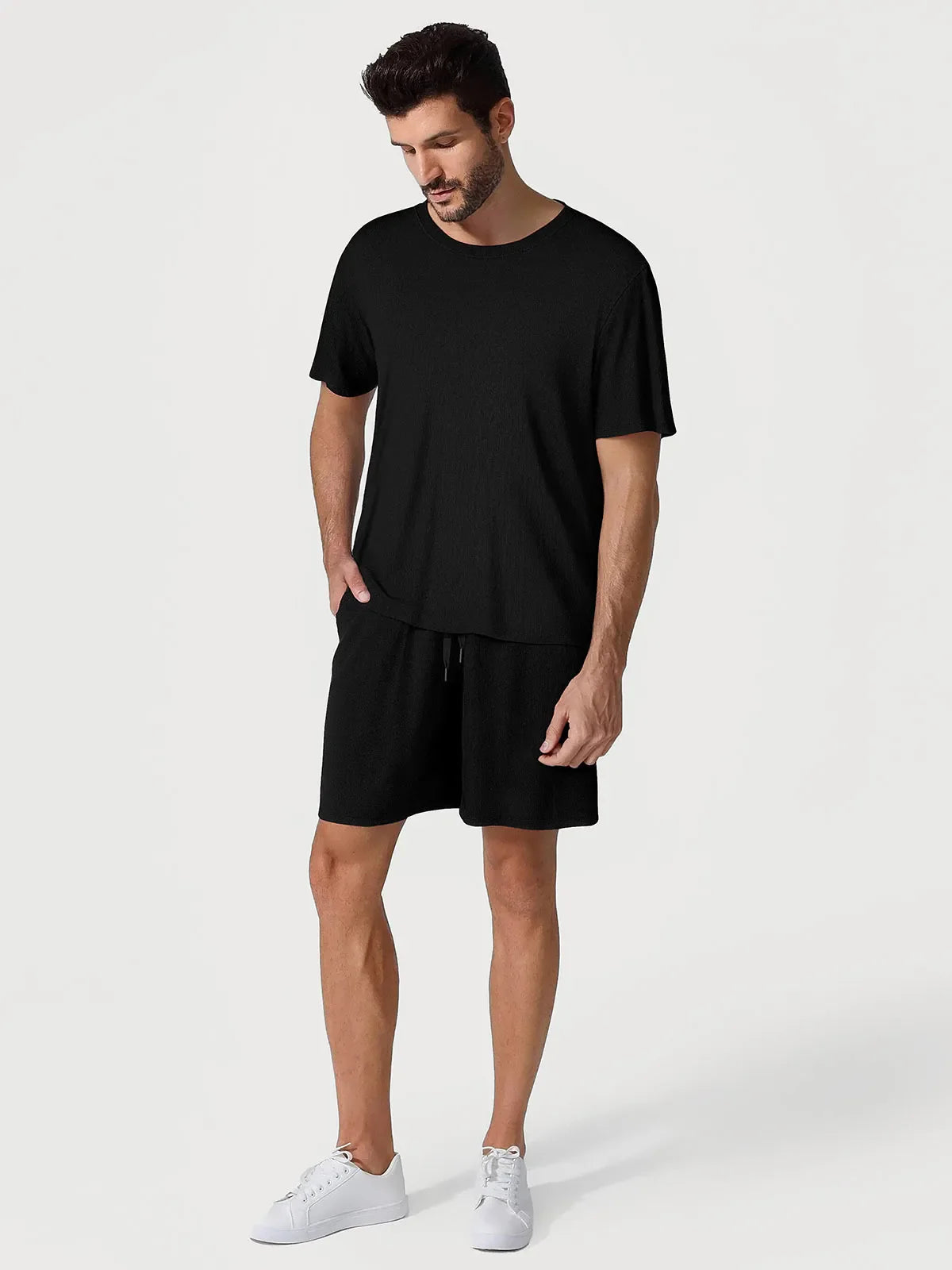 Accentuated by a classic, breathable crewneck, this loungewear set offers a relaxed fit for unrestricted comfort at home. The elastic waistband ensures easy, flexible wear—perfect for chilling throughout the day.