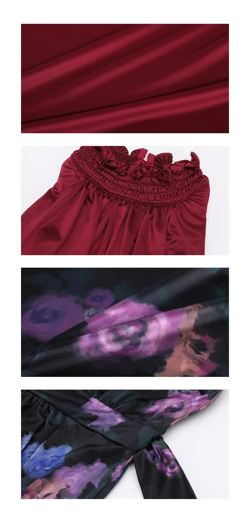 Popilush® Red / XS Draped High Neck Sculpting Floral-print Maxi dress