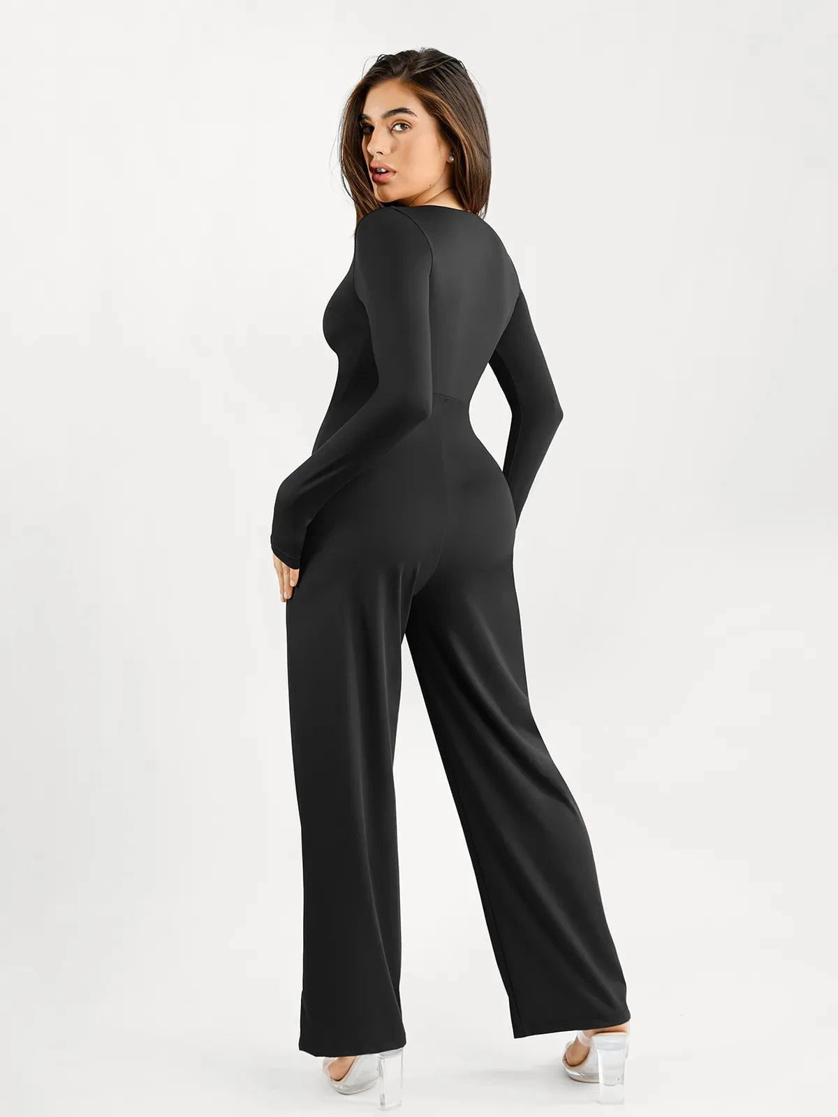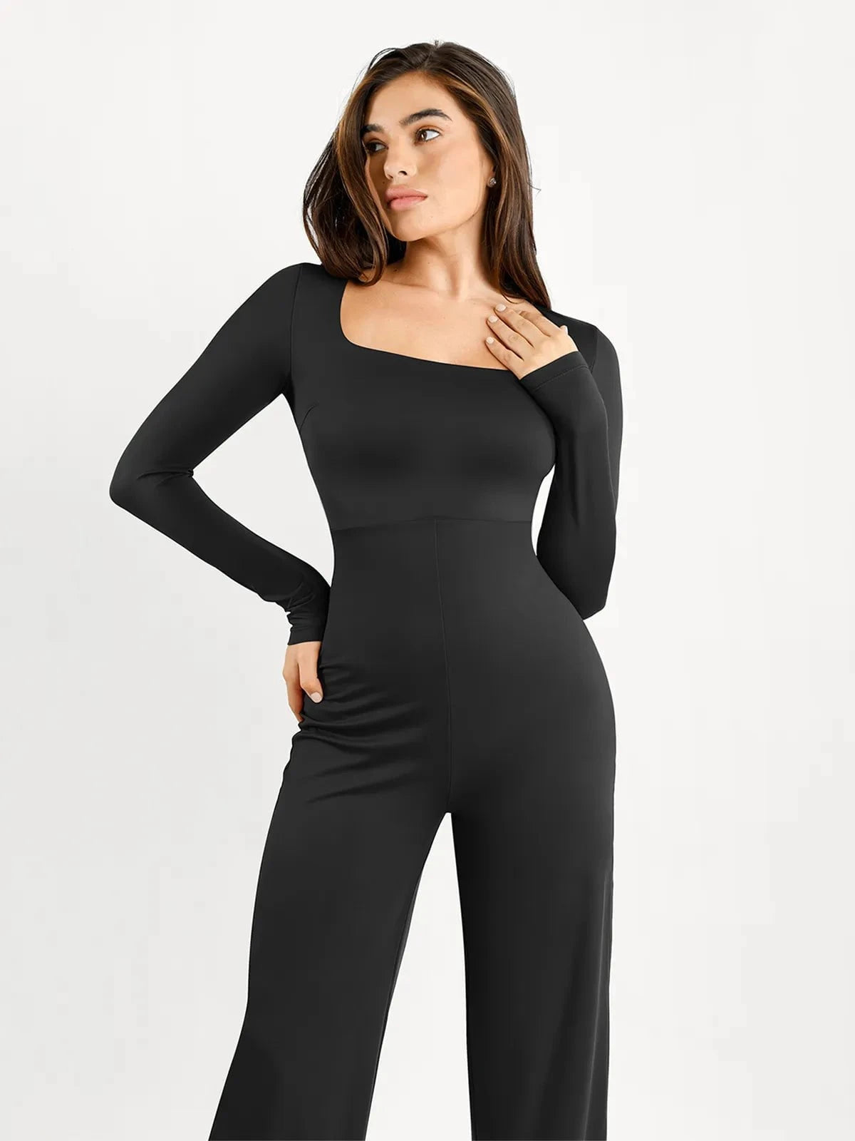 Shapewear Long Sleeve Square Neck Slimming Wide Leg Jumpsuit